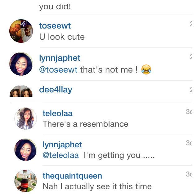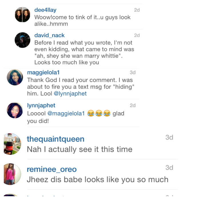 Adanna & David: couple on the Left , I first heard about the couple via one of my youtube stalking nights and they made me laugh so much, I subscribed to their channel, although then I didn’t see any resemblance. Fast forward, months later people started tagging me randomly on their instagram videos saying ‘ Tosin she reminds me of you”, ” Tosin see your look alike” etc. I then checked them out and followed, I still didn’t agree to the resemblance lol.  However, I recently posted this picture of them below on my Instagram page and the comments I got were hilarious! see for yourself!