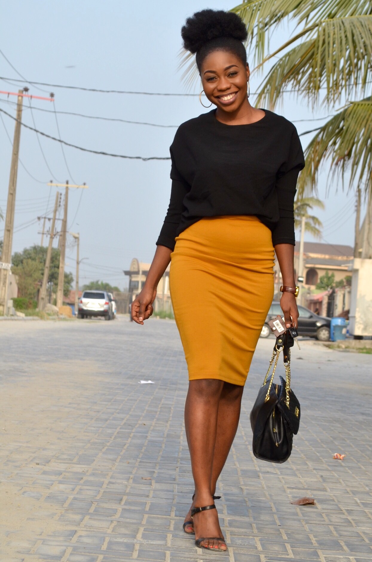 How are you and hope you’re well. Today I’d be sharing this simple look I put together. I bought the skirt from one of my sojourns to Lagos Island market. I was really attracted to the color and decided to buy. Got it for a thousand Naira only/£3.